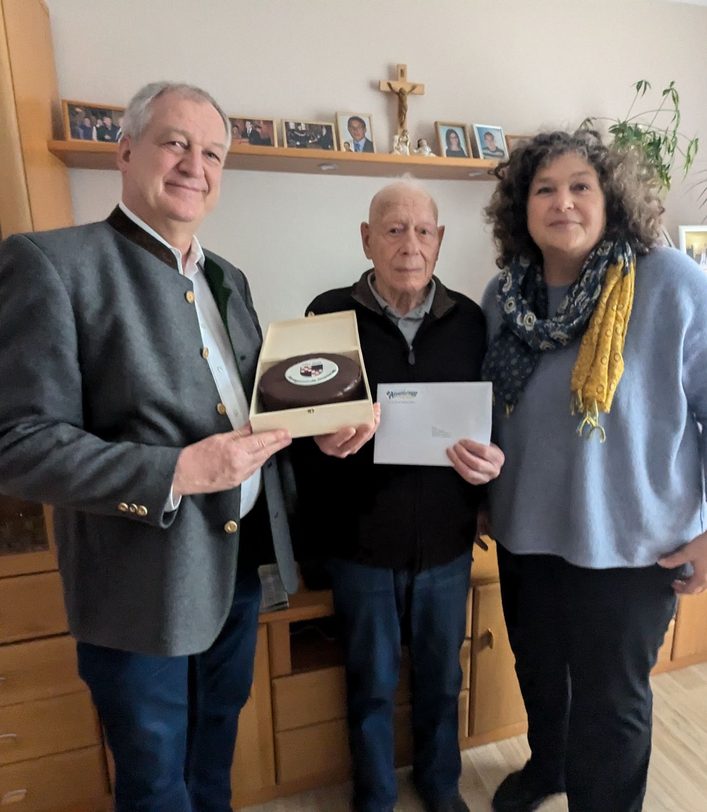 Personen von l. nach re: GR Rainer Keiblinger, Jubilar Alois Stiegler und BGM Beate Jilch